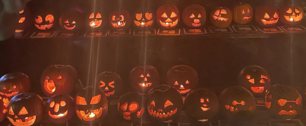 • かぼちゃをくり抜いた「ジャック・オー・ランタン」 を飾る。