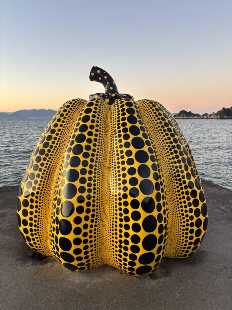 The famous pumpkin sculpture by Yayoi Kusama is a symbol of Naoshima.