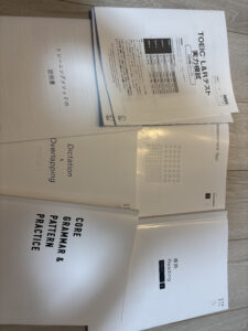 初日に現状の実力の確認テストを受けて、その後契約についてのお話と動機確認や教材説明がありました。